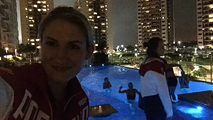А вечером девчонки решили: пойдемте в бассейн у нашего корпуса, будем отмечать там. Это спонтанная идея – все на таком кураже, просто властелины мира.