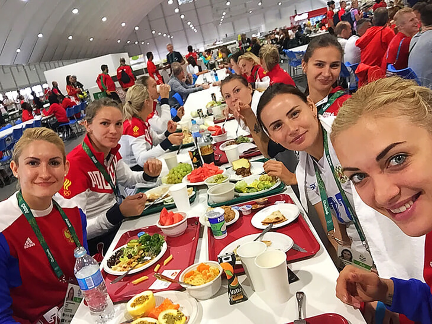 Питались в основном в общей столовой – огромные шатры, куда пускали только с аккредитацией. Берешь поднос и идешь по секциям: бразильская кухня, азиатская (очень острая), итальянская – на нее всегда были очереди.