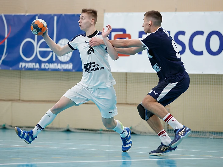 В первом матче армейцы смогли завладеть преимуществом в самом начале встречи. Большая заслуга в этом защитной линии красно-синих, а в частности, вратаря Вячеслава Локтева. Пропустив мяч на второй минуте игры, он надежно «запечатал рамку» до середины тайма и не пропустил ни одного броска. За это время армейцы сумели оторваться на 13 голов, что позволило им спокойно контролировать ход встречи.
