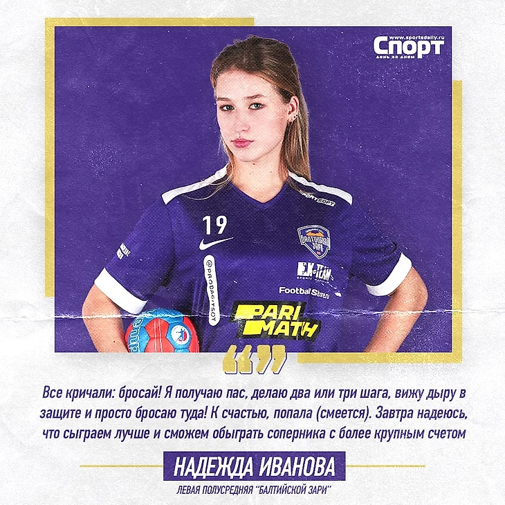 – Команда выходила на игру с настроем только на победу. Поначалу мы присматривались к сопернику, поэтому было большое количество невынужденных ошибок. Главное, что нам удалось добыть победу и порадовать своих болельщиков. Перед последним броском я слышала голос каждого игрока своей команды. Все кричали: бросай! Я получаю пас, делаю два или три шага, вижу дыру в защите и просто бросаю туда! К счастью, попала (смеется). Завтра, надеюсь, что сыграем лучше и сможем обыграть соперника с более крупным счетом, – передает слова Ивановой пресс-служба клуба.