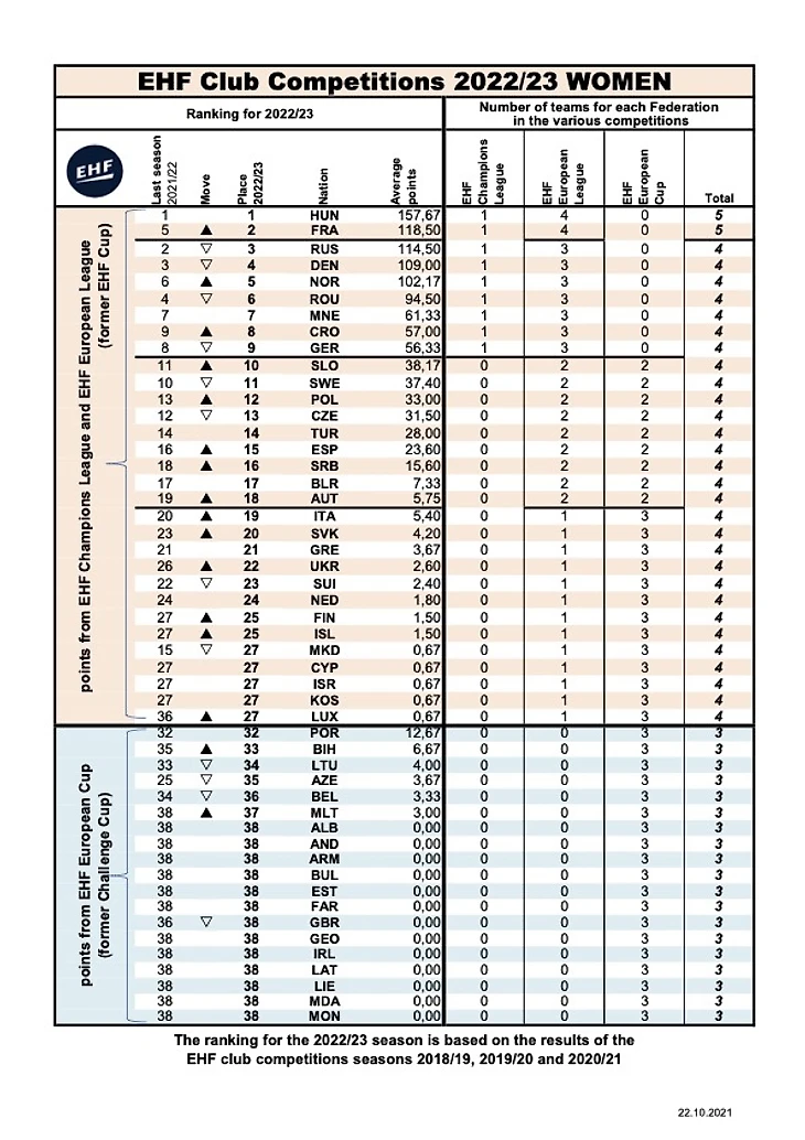 Долгожданные рейтинги федераций на еврокубковый сезон-2022/23 оказались противоречивыми. Если у мужчин Россия движется вверх, то у женщин утеряны одна позиция и одно место в Евролиге.