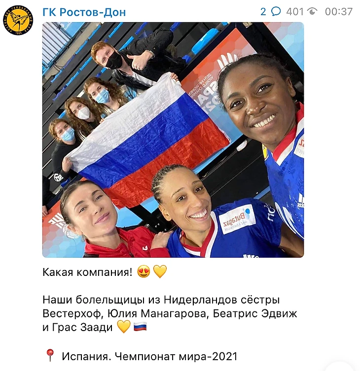 А уже в декабре девушка с сестрами была замечена на трибунах арены «Palau D'Esports De Granollers» испанского города Гранольерс с триколором в руках — тройняшки Вестерхоф болели за сборную России на чемпионате мира-2021. И это несмотря на то, гандболистки их родной страны являются действующими чемпионками мира.