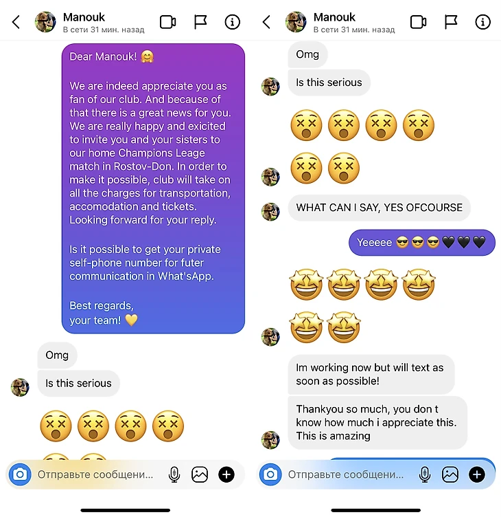 Все это время клуб и наша преданная болельщица вели переписку. Манук Вестерхоф делилась переживаниями за команду и интересовалась новостями.
