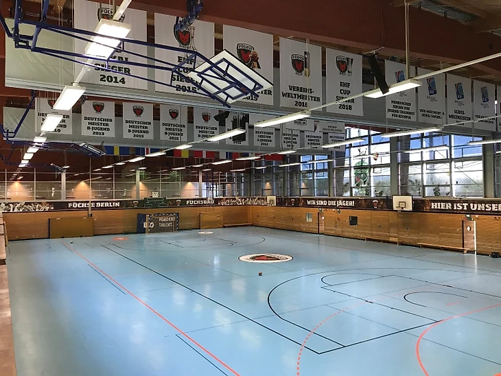 Тренировочная же база команды находится в отдалении от зала. Примерно 7 километров к востоку от центра города предстоит преодолеть тем, кто хочет наведаться в настоящее лисье логово: клубную вотчину с игровыми и тренажёрными залами, а также кабинетом физиотерапии. Здесь в ежедневном режиме работают старшие и проводят домашние матчи младшие составы "Берлина".