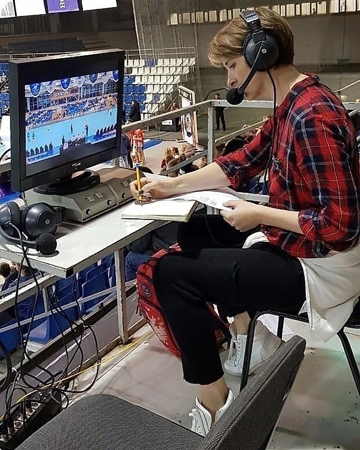 — Если хочешь смотреть комбинации, с торца очень удобно. Особенно — когда ты болеешь за конкретную команду: садишься за воротами соперников и видишь "своих" в атаке. Но нам, комментаторам, конечно, поддерживать одну из команд нельзя. Разве что — если ты едешь со сборной России на Игры или чемпионаты мира и Европы, где допускается некоторая субъективность. Поэтому предпочтительнее занимать место в центре. Тем более ещё есть картинка на мониторе.