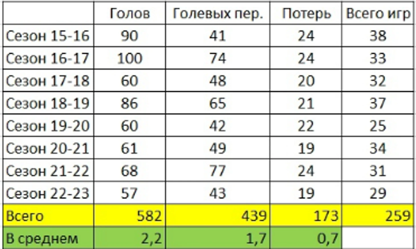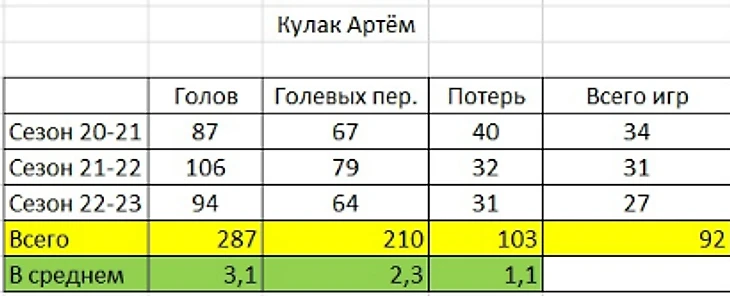 Стоит отметить что в статистику по голам я не брал голы с 7м, так как они нас сейчас мало интересуют, да и сравниваемый с ним в дальнейшем Артём Кулак их никогда не бросает, поэтому сравнение можно будет считать не совсем объективным.