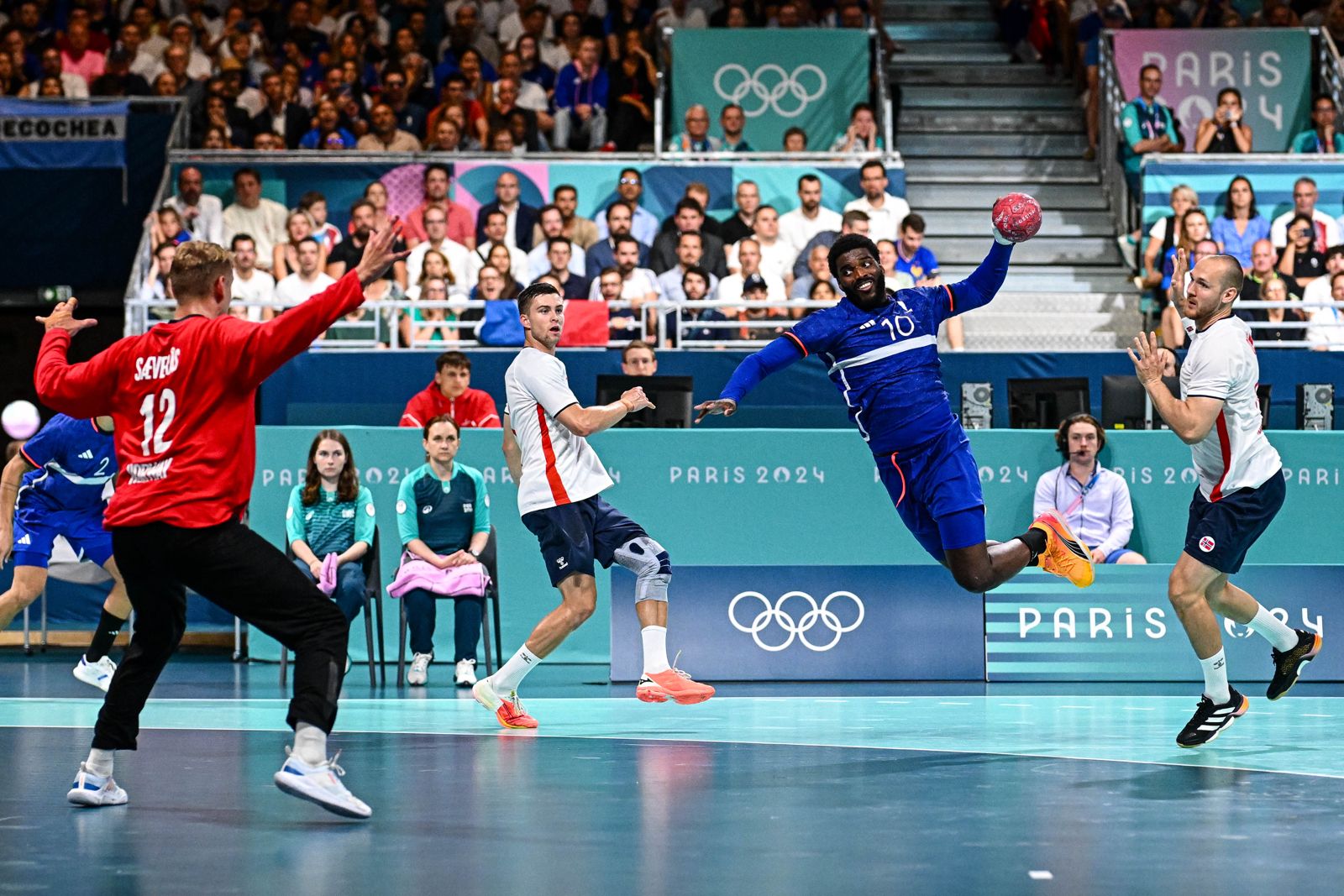 Выходившие со скамейки защищаться Велте Эк Ага и Кристиан и О’Cалливан создавали необходимую плотность в центре, вынуждая соперников смещать акцент завершения атак на края. Французы были вынуждены бросать с острых углов, что существенно упростило задачу качественно отыгравшему матч голкиперу Кристиану Северасу. На 23-й минуте встречи перевес скандинавов достиг внушительных размеров — 14:7.