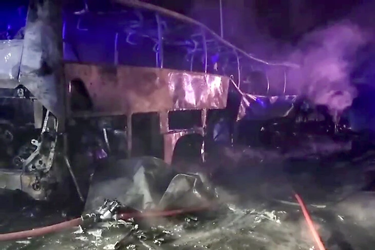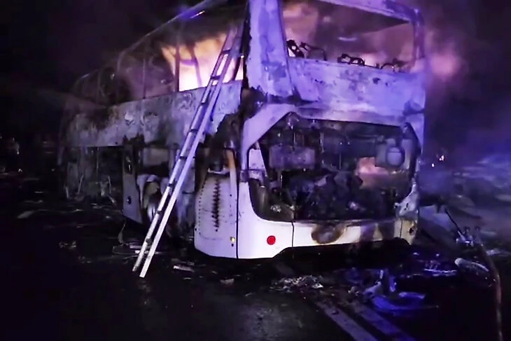 ● После аварии автобус загорелся. Внутри него на тот момент находились 49 человек, в том числе дети.