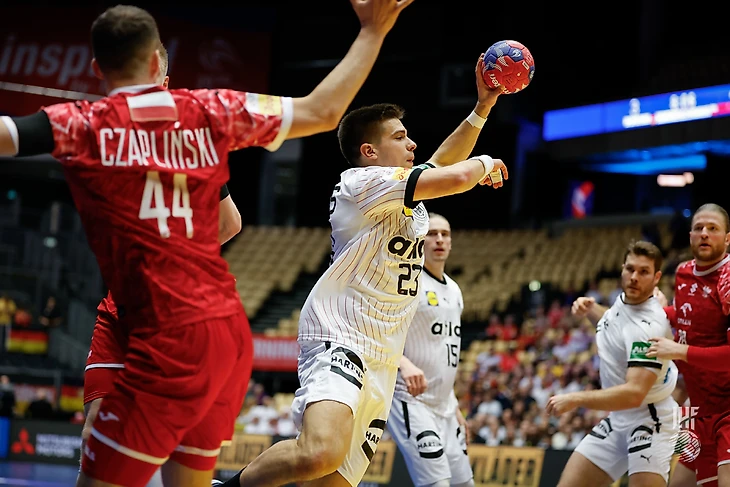 Интересным противостояние Польши и серебряного призера олимпиады Германии получилось только в первом тайме. Он завершился преимуществом немцев всего в один гол. Играли мяч в мяч, неплохо показывали себя вратари и защита обеих команд. Темп первой половины был невысоким, позиционное нападение не то, чтобы легко давалось коллективам. Часто можно было увидеть броски с девяти и десяти метров, у поляков получалось неплохо скидывать в линию, у немцев классно взаимодействовала связка Кнорр – Ущинс.