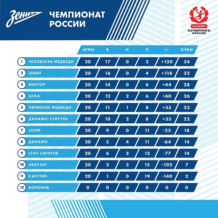 «Зенит» и «Чеховские медведи» показали другой уровень конкуренции.