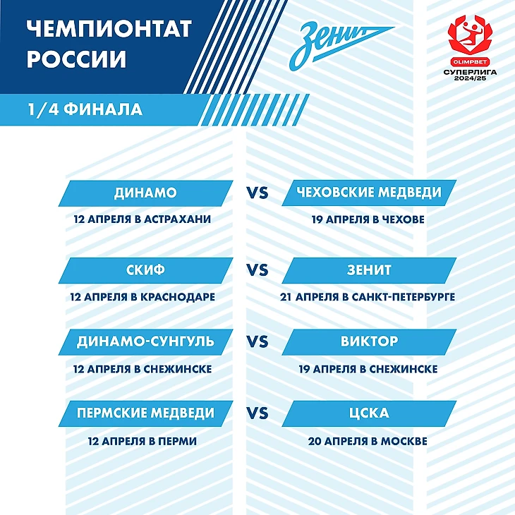 Эти вопросы с перспективой на будущее. Очевидно, что нет никаких претензий. Не проблема ЦСКА и СКИФа, что «Зенит» и Чехов затратили больше сил и эмоций, да и это отговорки в пользу проигравших. Но в будущем было бы здорово видеть более равные условия. Финал с «-11» - вина только «Зенита», но такой результат для популяризации вида спорта никак не подходит.