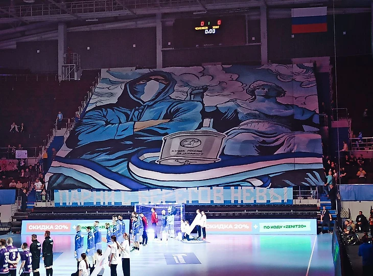 Фанаты «Зенита» поддерживали свою команду, встретили её выход на паркет таким прекрасным полотном. Фактор домашней арены пошел на пользу зенитовцам, однозначно. Фанаты, как минимум, не испортили праздник гандбола, а, как максимум, украсили спортивное событие своей энергией.