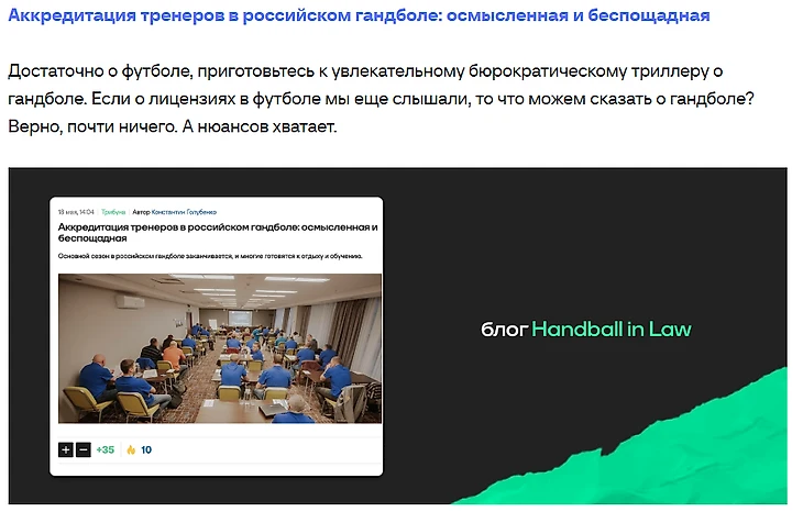 Неожиданно для себя узнал, что материал про аккредитацию тренеров в гандболе попал в топ-6 лучших материалов мая на Трибуне!