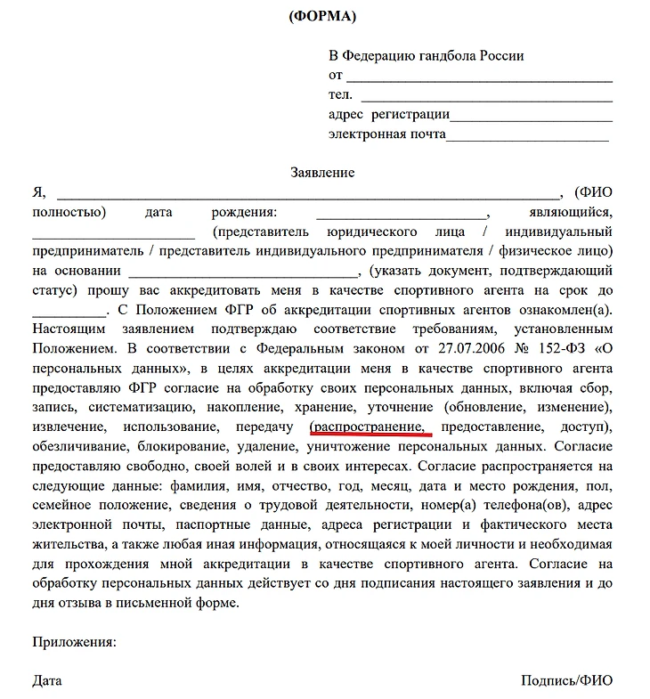 Таким образом, если спортивный агент хочет помогать гандболистам и их тренерам в заключении контрактов с клубами, то им требуется пройти обязательную аккредитацию в ФГР.