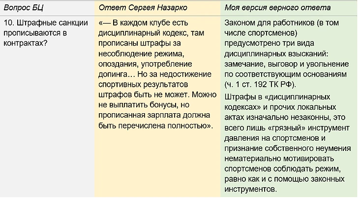 К тому же, в комментариях к материалам БЦ и ФГР мне становится тесно, поэтому попробую выразить свое мнение здесь, тем более что некоторые ответы прямо противоречат трудовому законодательству и почему профессиональный спортивный агент говорит об этом как о чем-то нормальном несколько удивляет.