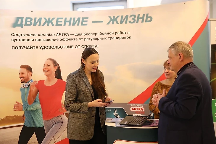 АО «НИЖФАРМ» представила на конференции свои новые разработки – она давно производит биологически активные добавки (БАД*) для поддержки суставов и связок, и теперь портфель расширился продуктами, разработанными для тех, кто занимается спортом.