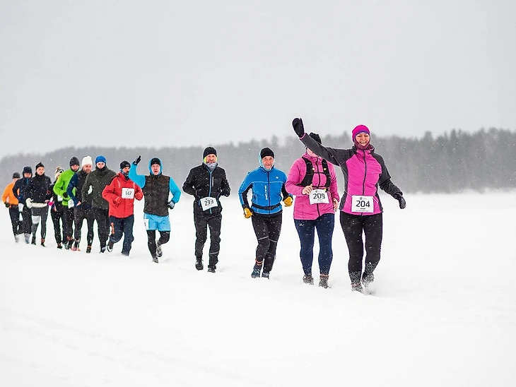 3 марта на горнолыжном курорте «Ялгора» в Республике Карелии прошел ультрамарафон Onego Ice Ultra. Участники соревновались на дистанциях 50, 20, 10 и 5 км. Трасса трейла прошла по мокрому снегу на поверхности залива Ялгуба (Онежское озеро).