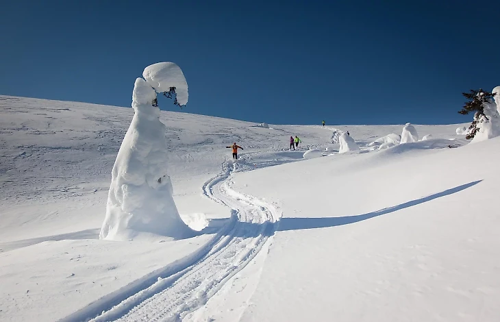 «Сияние» протяженностью 30 км с набором высоты 1000 м. Трасса проходит в один круг с подъемом на гору Железную.