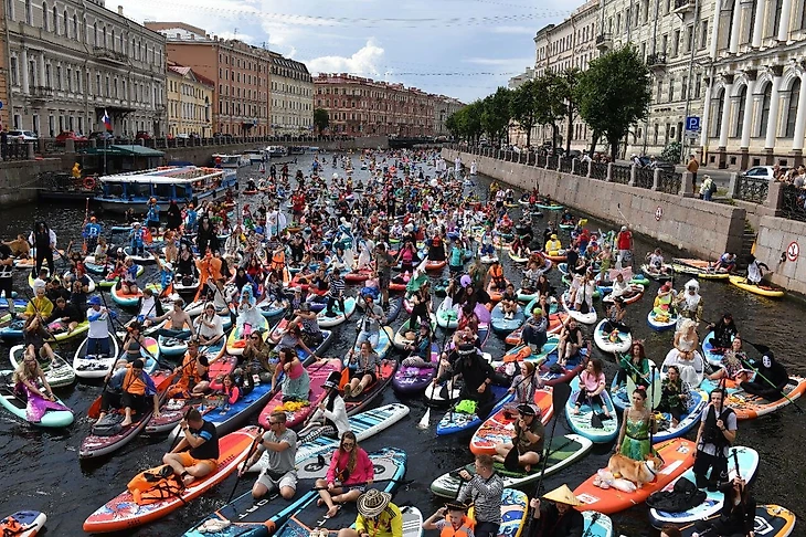 В Санкт-Петербурге прошел фестиваль сапсерфинга «Фонтанка SUP». На старт вышли 10 000 участников