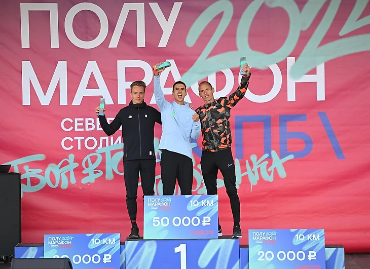 В полумарафоне среди мужчин победил Дмитрий Неделин. Второе место занял Ярослав Бякин – спортсмен из Саранска, который неделей ранее также занял второе место на дистанции 30 км на забеге «Пушкин – Петербург». Третье место – Алексей Реунков, опытный марафонец и многократный победитель забегов, четвертое – Алексей Патраков, спортсмен из Пермского края, который три месяца назад занял третье место в марафоне «Белые ночи» в Санкт-Петербурге. Пятое место – Артур Бурцев, который неделей ранее выиграл марафон «Пушкин – Петербург».