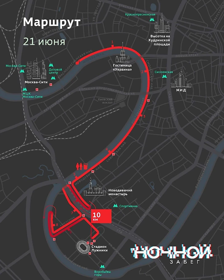 На «Ночном забеге» в Москве поменялся маршрут. Старт пройдет на Краснопресненской набережной