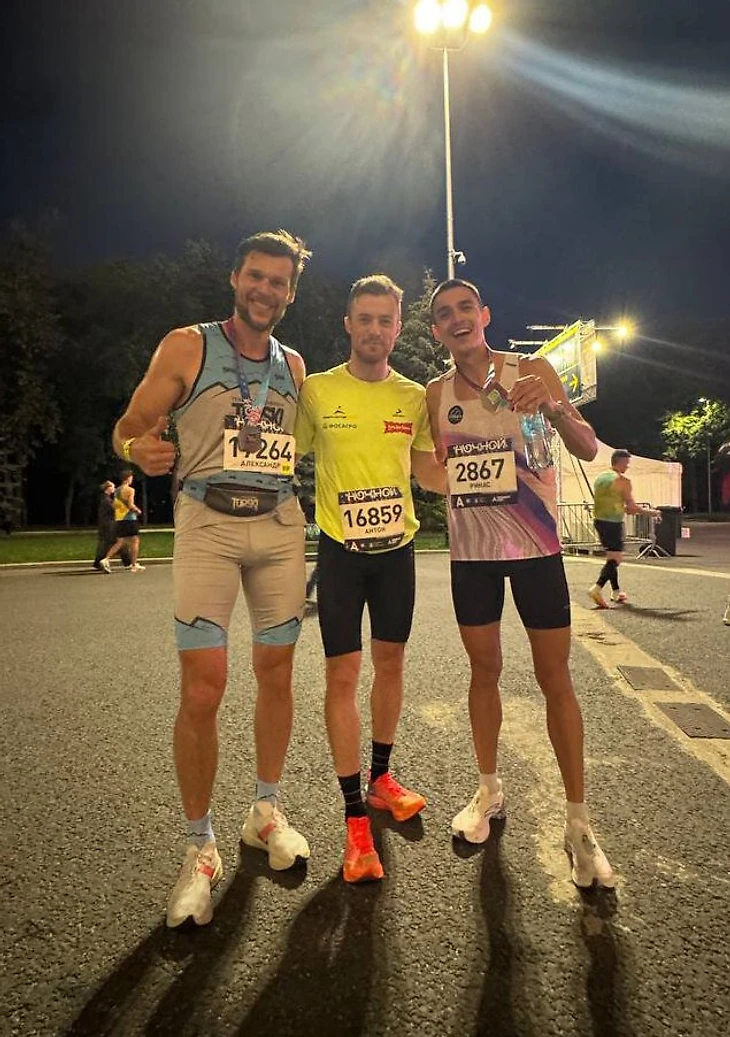 Антон Бабиков и Александр Панжинский пробежали «Ночной забег» в Москве. Бабиков стал девятым