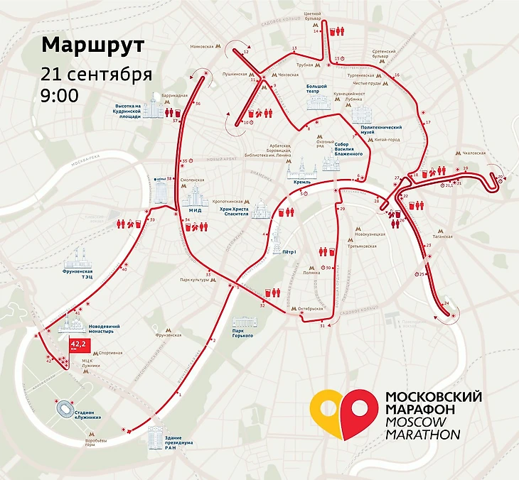 20 и 21 сентября пройдет Московский марафон. Помимо основной дистанции 42,2 км, участники также будут соревноваться на дистанции 10 км.