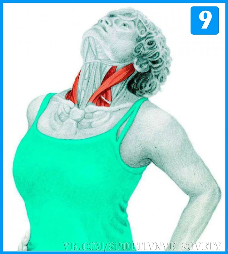 Техника выполнения: начни растяжку мышц, медленно поворачивая шею и поддерживая подбородок в приподнятом положении. Для более глубокой растяжки можно задействовать руку.