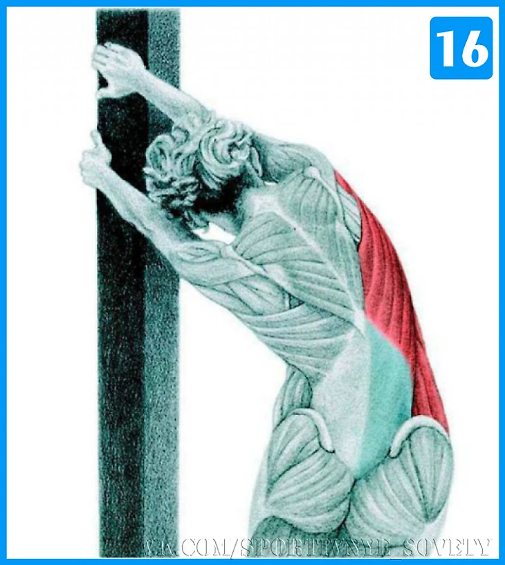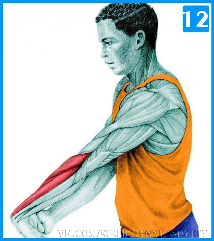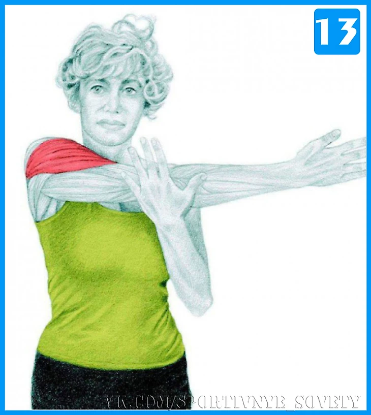 Техника выполнения: выпрями руку поперек тела и слегка надави на ее, чтобы усилить растяжку мышцы.