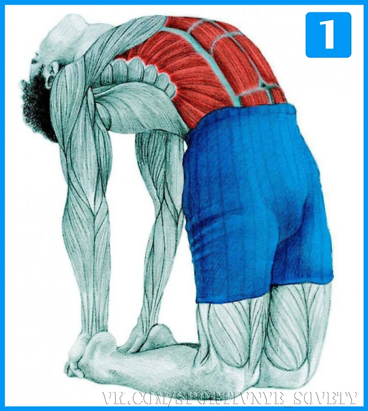 Техника выполнения: садись на пятки, отведи руки назад и вытолкни бедра вперед и вверх, не перенапрягая поясницу. При наличии проблем с шеей не запрокидывайте голову назад.