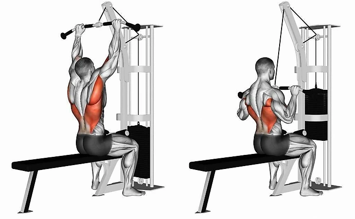 Если вы новичок, не выполняйте тягу за голову. Это травмоопасное упражнение, так как заставляет плечевые суставы работать под непривычными углами. Оно требует опыта и идеальной техники.