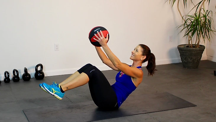 подъемы корпуса (без груза или с легким медболом) – 10 повторений;