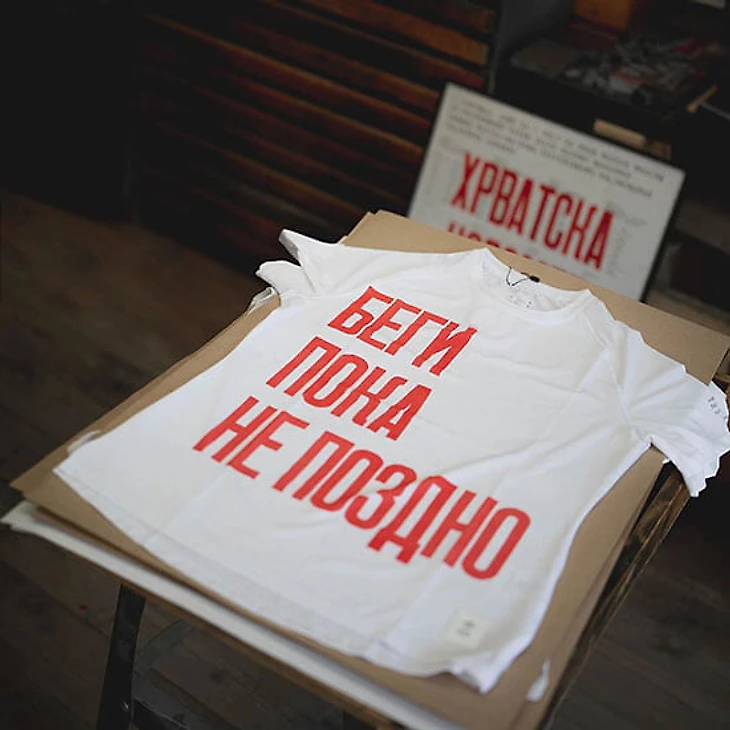 По всей видимости эта футболка коллаб с @partisanpress, ну или заказ у них сделали под себя