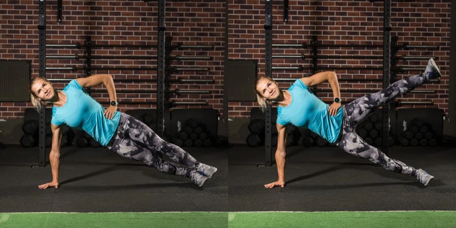 1. Боковая планка с подъемом ноги