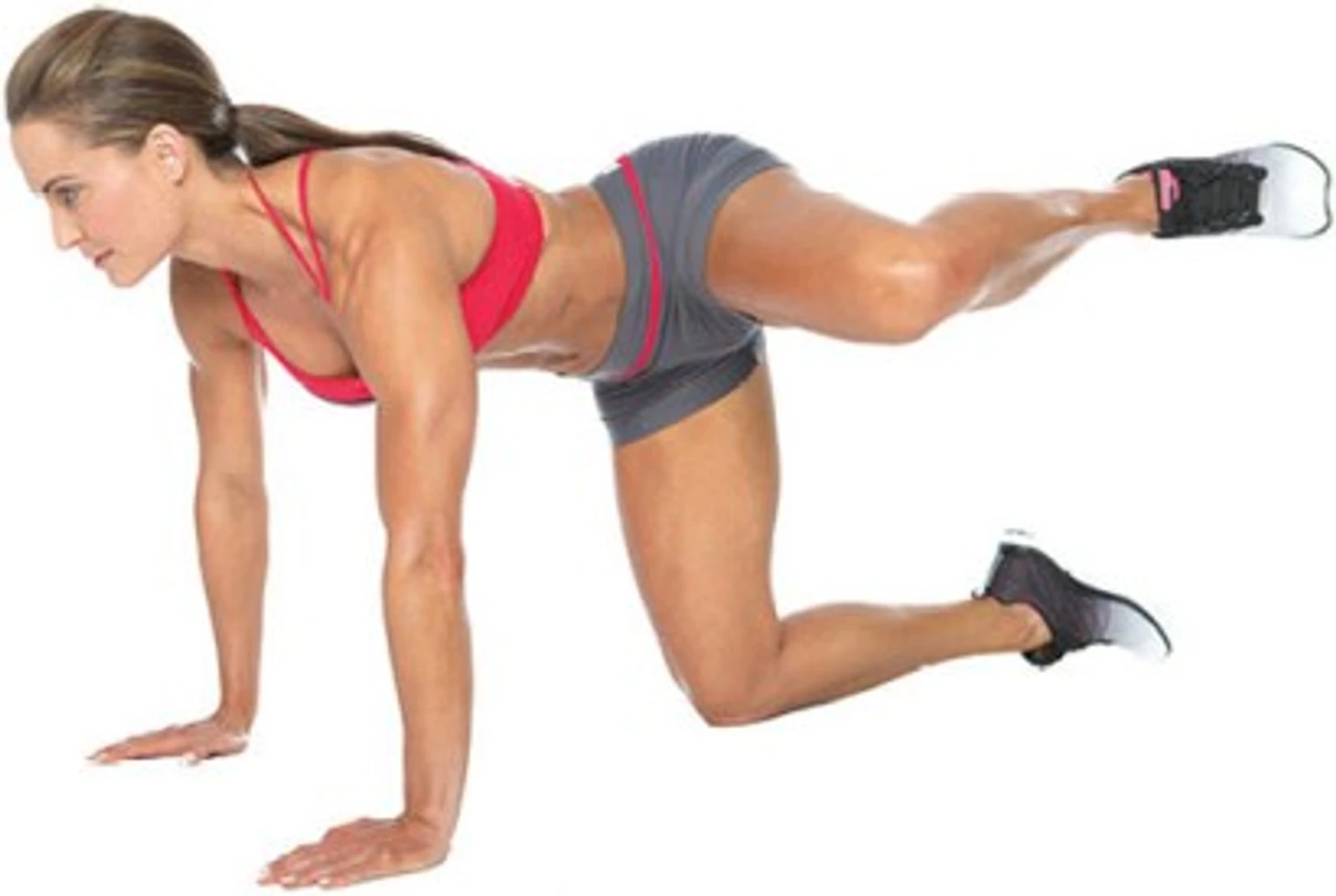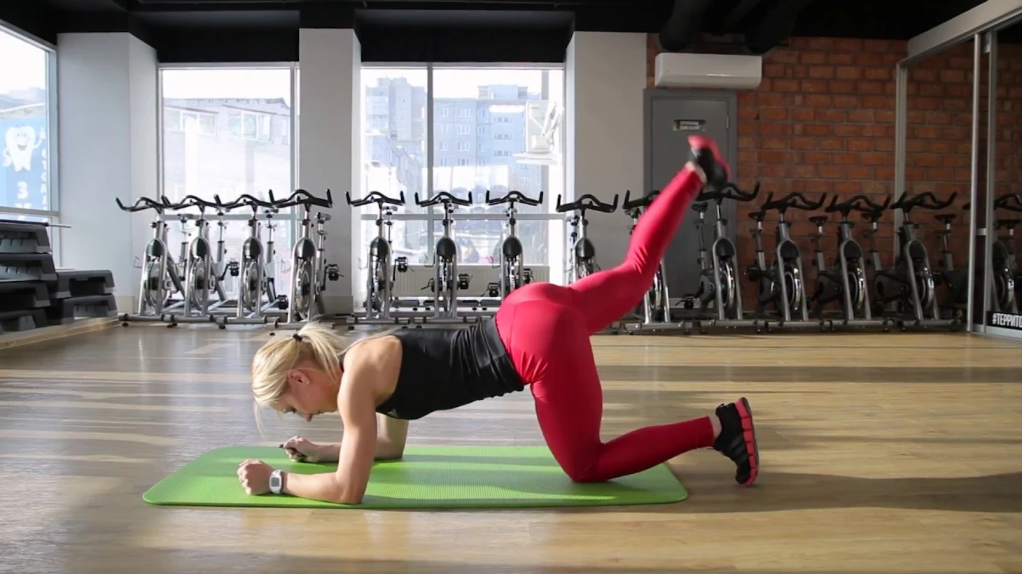 1. Исходное положение — на четвереньках. Спина прямая, тело и пресс — напряжены.