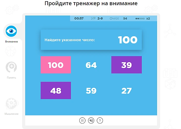 1. Сначала нужно оценить свои способности. Пройдите специальное тестирование, которое поможет обозначить ваш уровень внимания, памяти и мышления. Тогда система подберет для вас персональную программу.