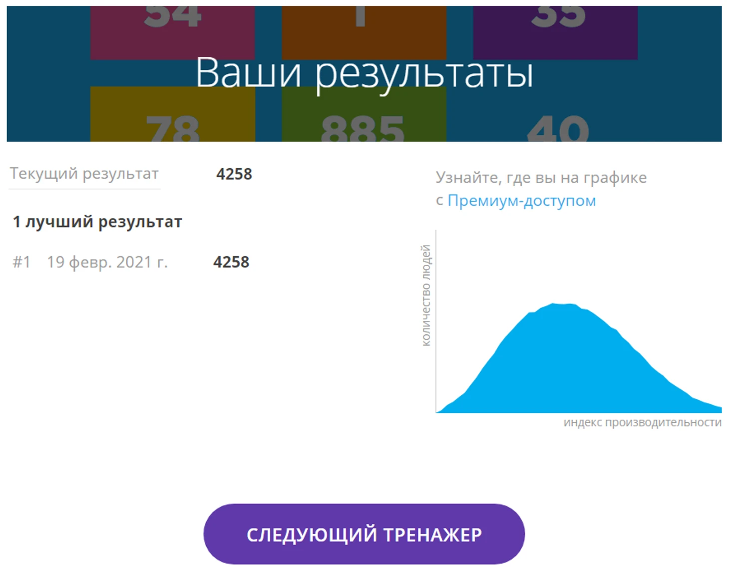 3. Отслеживайте свой прогресс в развитии. Смотрите статистику ваших тренировок, улучшайте некоторые показатели, а также можете сравнить свои результаты с результатами других пользователей Викиум.
