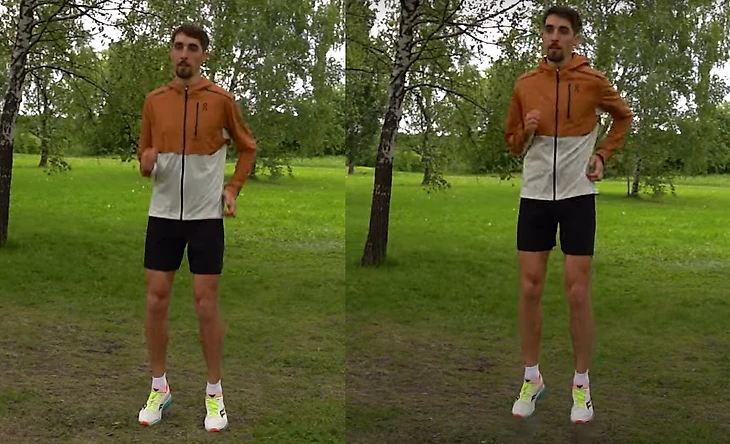 Упругие прыжки выполняются на прямых ногах. Главное в упражнении – добиться правильной работы стопы. Приземление осуществляется на переднюю часть стопы с последующим резким отталкиванием вверх. Старайтесь специально не увеличивать высоту прыжка. Необходимо минимизировать время контакта с опорой и добиться высокой частоты движений.