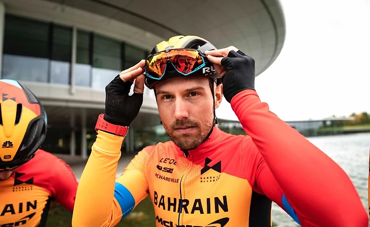 Основатель Le Col Янто Баркер в экипировке для Team Bahrain McLaren
