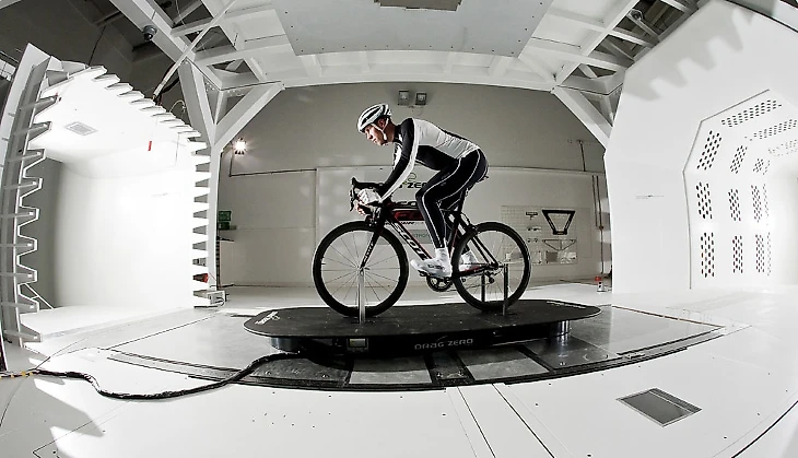 Шоссейный велосипед в аэродинамической трубе
