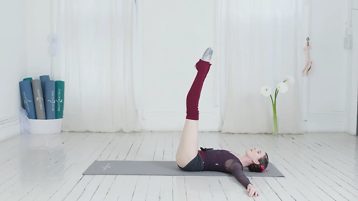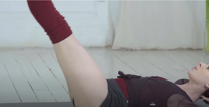 Поднимаете одну ногу вертикально и начинаете делать плавные пружинистые движения вверх, пытаясь как бы достать носком до потолка. Поясница лишь немного отрывается от поверхности, не надо пытаться встать в мостик.