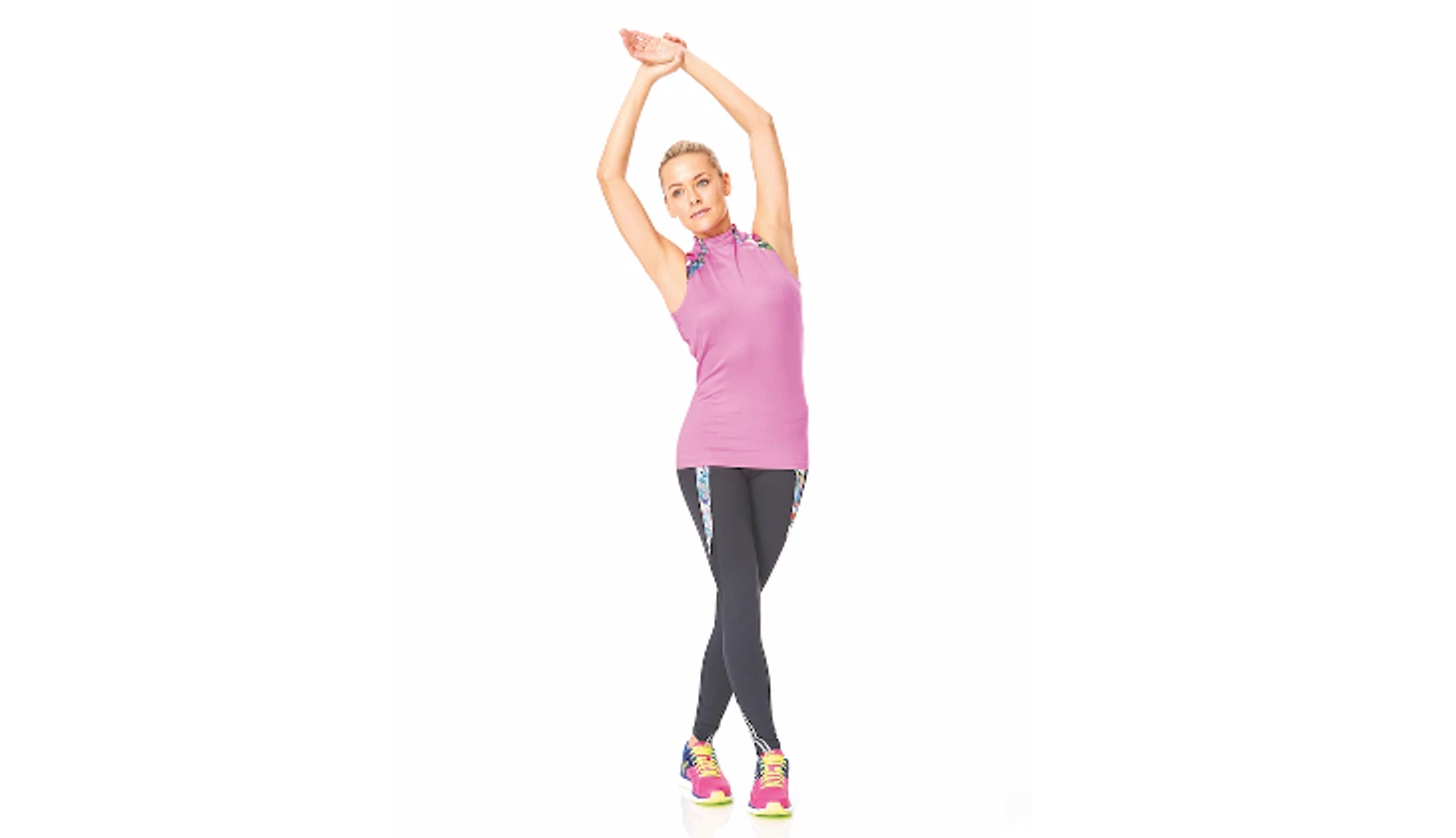 Встаньте и скрестите правую ногу перед левой. Вытяните руки над головой и обхватите правой рукой левое запястье. Наклонитесь в талии вправо и удерживайте такое положение. Вы должны чувствовать натяжение внешней поверхности левого бедра. Повторите для другой ноги.