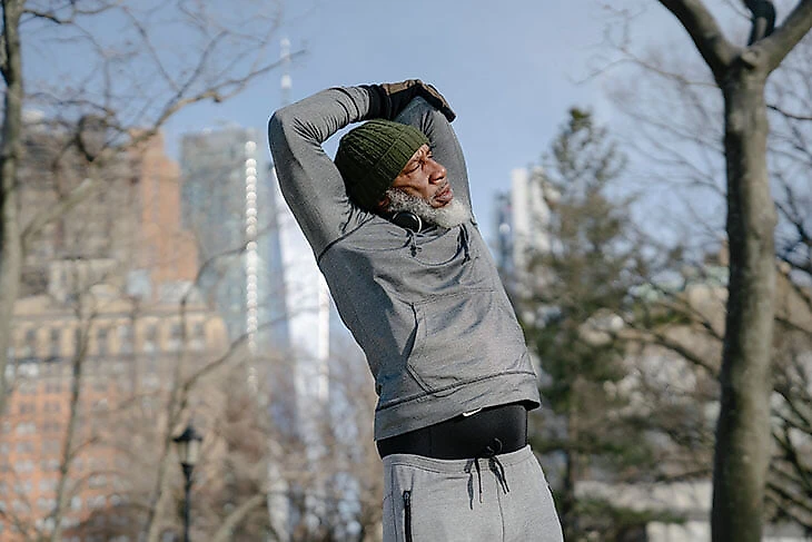 Самое важное в таких условиях – выбрать правильную одежду. Она должна быть теплая, но обязательно пропускать воздух. Влага с тела должна испаряться постепенно и равномерно. Сильно вспотеть и оказаться на ветру опасно: это риск переохлаждения и мышечных болей. Хорошо бы надеть и перчатки для занятий на турнике, ведь холодное железо обычно не слишком приятно на ощупь. Обувь не должна скользить и промокать – чтобы случайно не упасть, а ноги сохранить в тепле. Можно взять с собой на площадку и термос с горячим чаем.