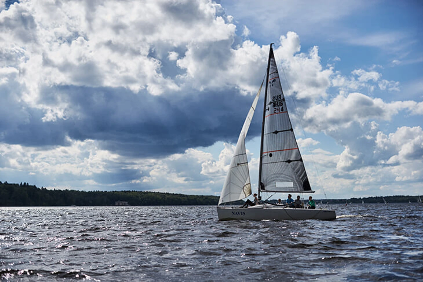 Курс «Знакомство с яхтой». Идеален для тех, кто пока не имеет представления о яхтинге. Длится три часа и проходит в Пироговском водохранилище. Этого мало, чтобы получить права.