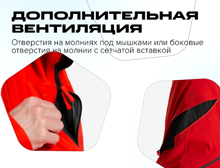 Также смотрите верхний слой с клапанами – обычно они располагаются под мышками. Это просто молнии, которые можно расстегнуть и сделать проветривание – отвести излишки влаги и тепла.