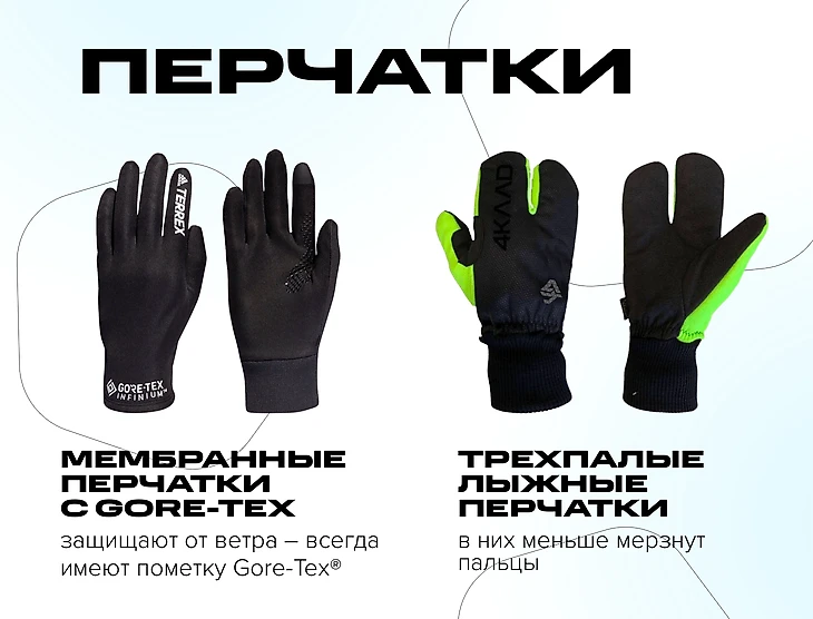Также продаются перчатки с Gore-Tex, которые защищают от ветра.