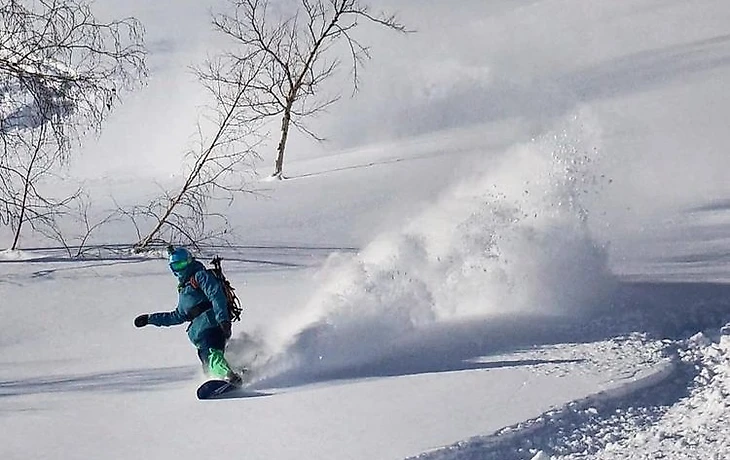 Настоящий сноуборд оказался очень скользким и трудноуправляемым. Но покорил настолько, что я попробовал фрирайдинг – спуск по нетронутой целине