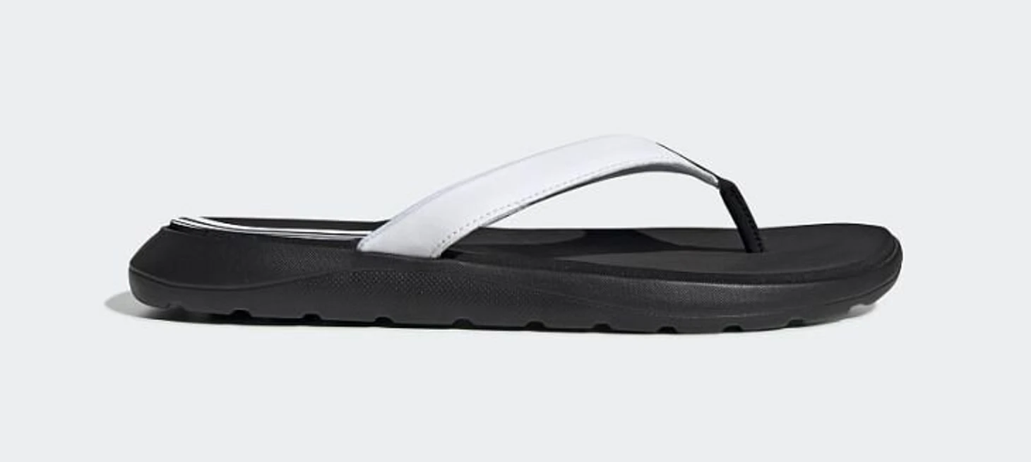 Лучшая модель, которую когда-либо делал adidas. Обратите внимание на форму: в отличие от всех шлепанцев, подошва не плоская, а приподнята в задней части. Получается небольшой подъем пятки, за счет этого лучше распределяется нагрузка по стопе, а подошва гасит удар пятки в момент, когда вы наступаете на землю. При этом подошва прочная, не прогибается, не реагирует на мелкие камешки и другие несовершенства покрытия (например, если идти до пляжа по грунтовым дорогам с мелкими камнями), не скользит на мокром кафеле (особенно важно в бассейне, обычные шлепанцы скользят, легко подвернуть ногу). Стелька – быстросохнущая, мягкая; влага, которая на нее попадает, не чувствуется и не мешает (в них нет противного ощущения, что ходишь в мокрых шлепках).