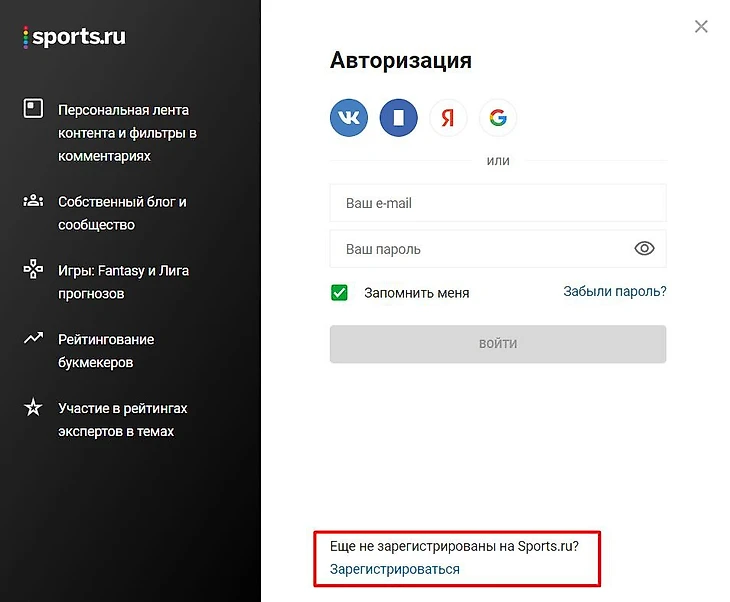 2. Вы можете зарегистрироваться с помощью соцсетей или ввести e-mail, на который придет письмо с подтверждением о регистрации.