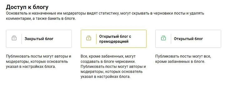 Также укажите тип блога: личный, закрытый или открытый. От этого зависит, кто именно сможет делать публикации без вашего ведома. Наиболее оптимальный вариант для блога – это «закрытый» тип. В нем сможете писать только вы и назначенные вами авторы. Видеть публикации «закрытого» блога, как и оставлять в нем комментарии, смогут абсолютно все.